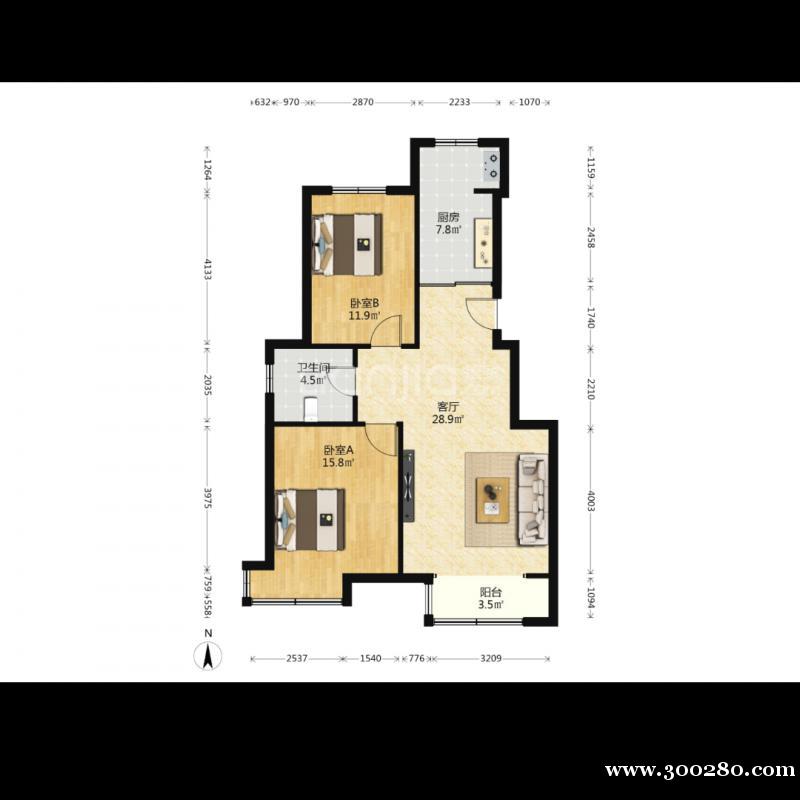 2室2廳1衛(wèi)